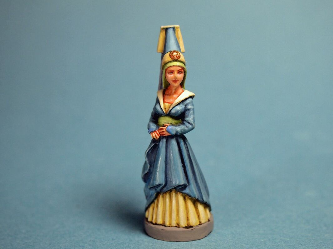 「エナン」という帽子を被った中世の貴婦人のミニチュアです。フィギュア高さ42mm・1パーツ・ホワイトメタル製