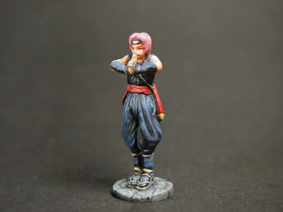 画像は組み立て・彩色してありますが、お送りするのは未塗装・未組み立てのキットです。メタル製ならではの質量の高さで小さいながらも存在感があり、自由に彩色してお楽しみいただけます。塗装のための下準備の手順はレジン製のガレージキットと同じでほとんど変わりません。塗装の際はメタル・プライマーやサーフェーサー等の下地剤を使用すると塗りやすくなります。塗料はアクリル・エナメル・油彩・模型用塗料など好みの塗料をご使用ください。シタデルやファレホ等のミニチュア専用水性アクリル塗料をお勧めします。