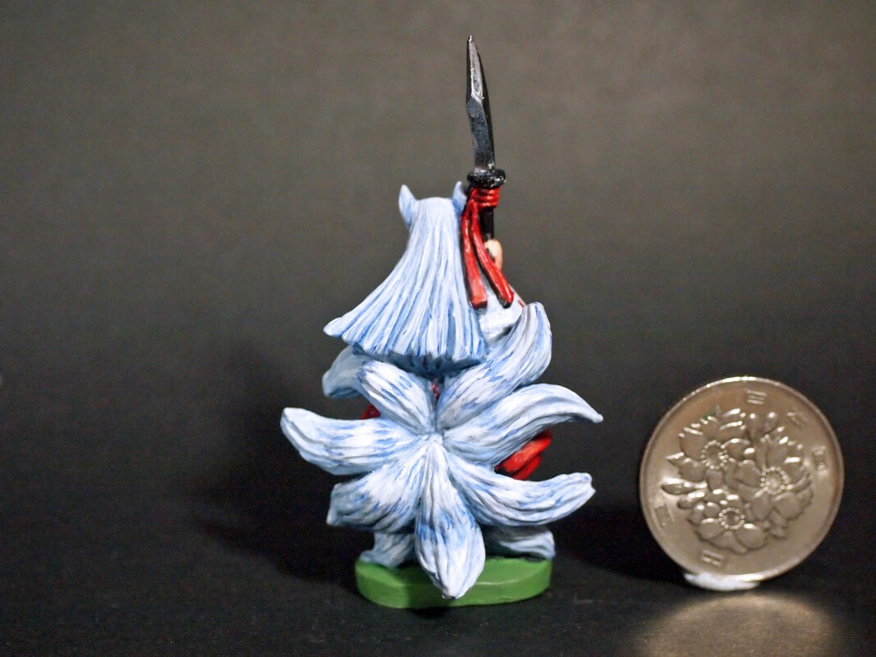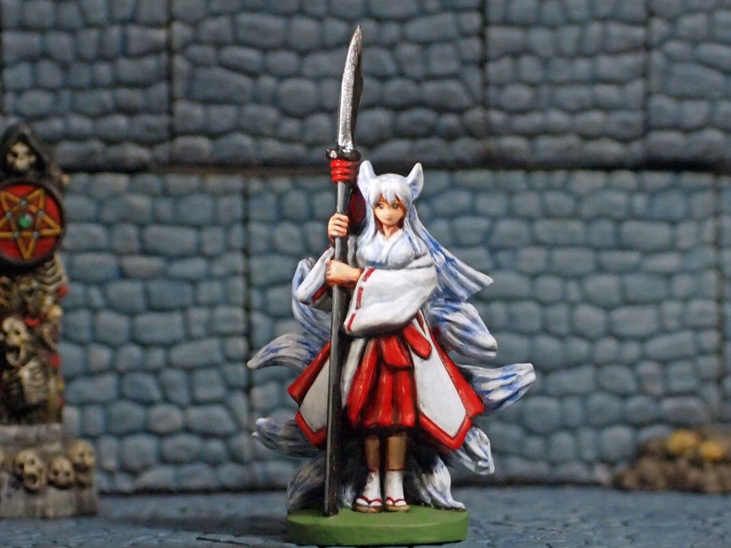 薙刀を持った狐巫女。高さ43mm・全高60㎜・2パーツ・ホワイトメタル製・未塗装のキット