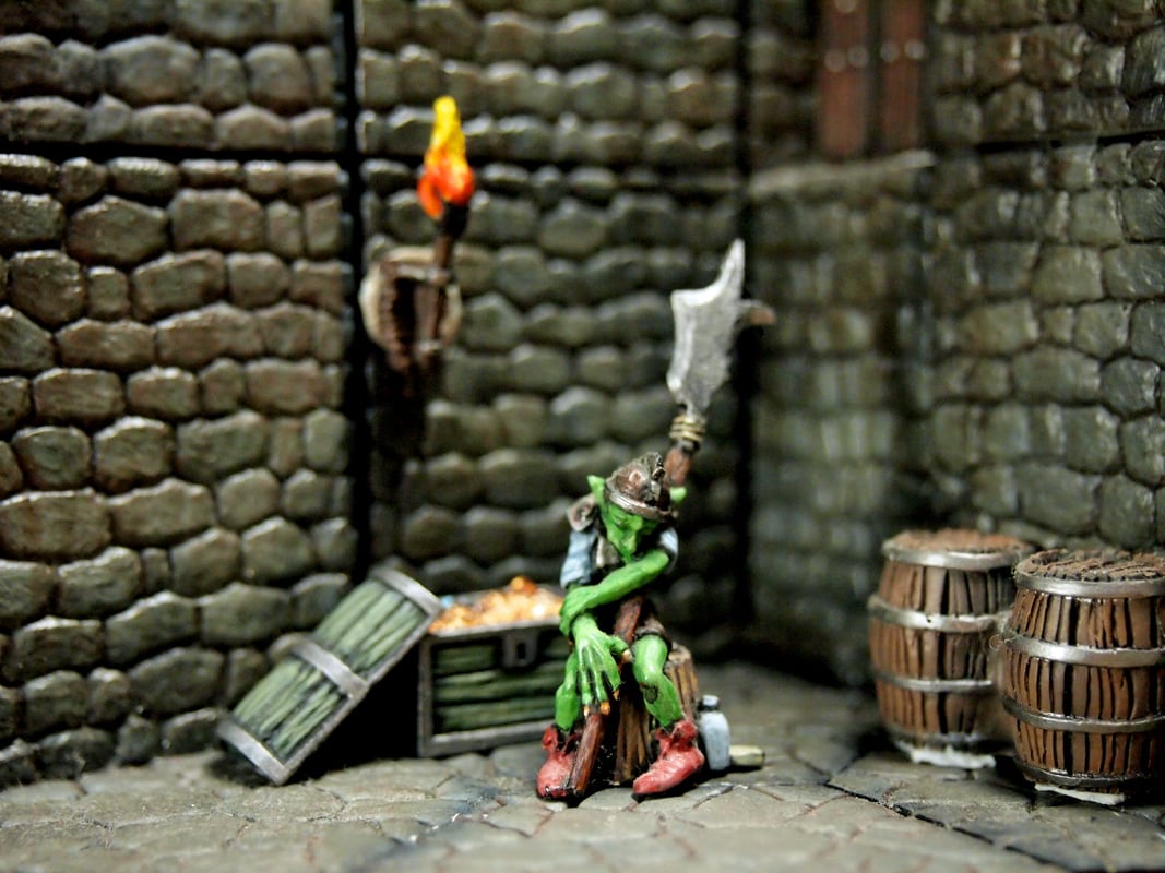 ゴブリン1体と宝箱のセット。蓋は取り外せるようになっています。ホワイトメタル・3パーツ・宝箱サイズ:17x11mm 高さ13㎜
