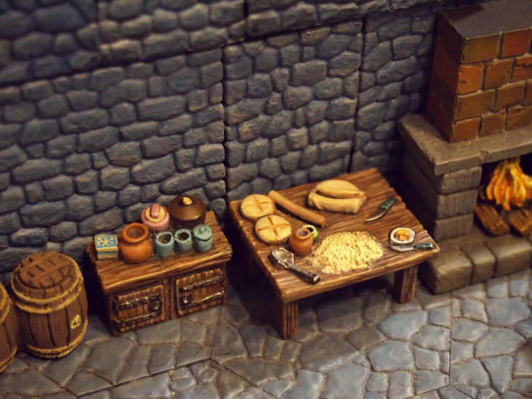 調理台とキャビネットのセットです。>ホワイトメタル製・4パーツのキット。テーブル: 28mm x 24mm x 14mm・キャビネット: 20mm x 21mm x 10mm