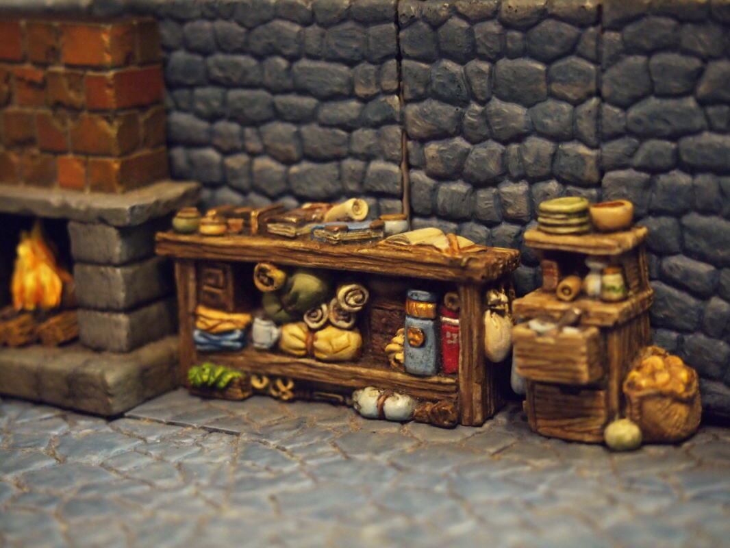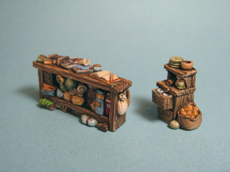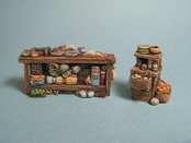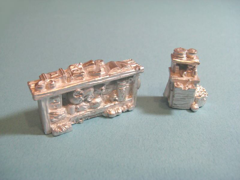 棚とキッチンキャビネットのセットです。ホワイトメタル製・2パーツのキット。棚サイズ: 20mm x 42mm x 10mm