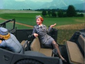 第二次世界大戦時のドイツ陸軍通信補助婦隊の婦人。足を組んで座りおしゃべりをしているポーズ。