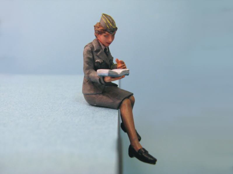 第二次世界大戦時のドイツ軍通信補助婦隊の婦人。座って本を読んでいるポーズ