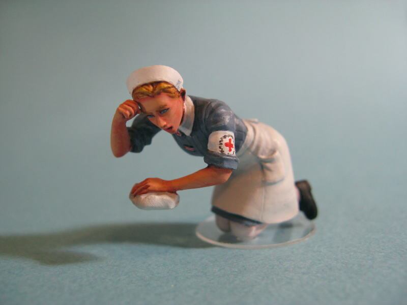 ひざまずいて手当しているポーズの第二次世界大戦時のドイツ赤十字看護婦。
