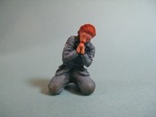 第二次世界大戦時のドイツ空軍高射砲補助婦。地面に座り込み祈っているポーズ。1/35スケール・全高27mm・ホワイトメタル製・3パーツ