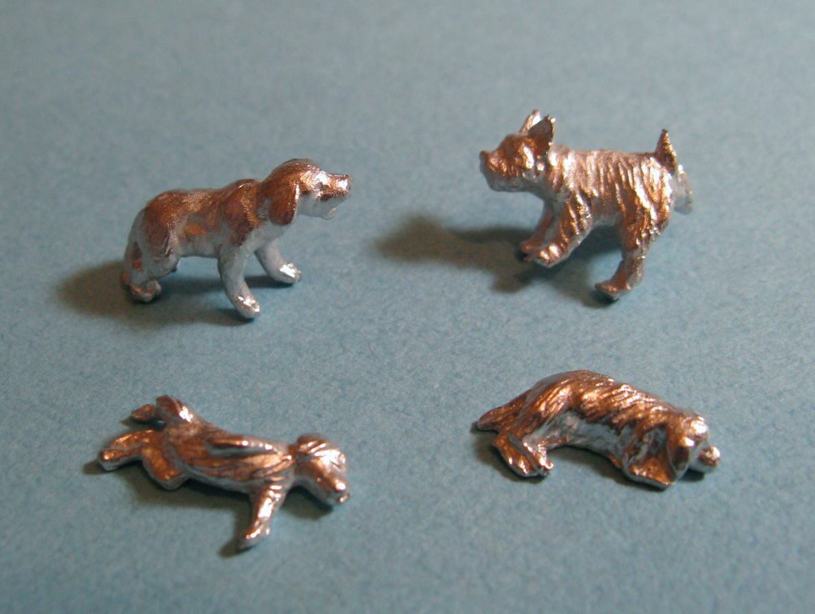 様々なポーズの子犬のフィギュア4体セットです。1/35〜1/48スケール・ホワイトメタル製・各1パーツ