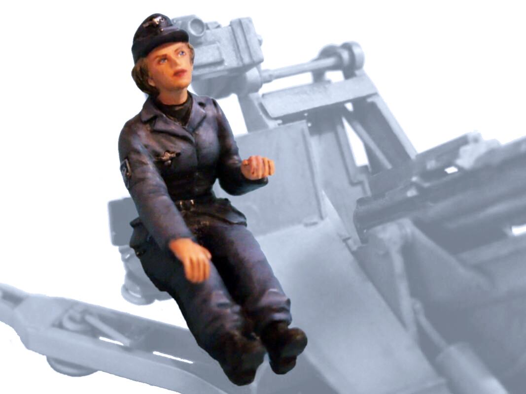第二次世界大戦時のドイツ空軍高射砲補助婦ver.6。高射砲を操作しているポーズ。1/35スケール・ホワイトメタル製・3パーツ
